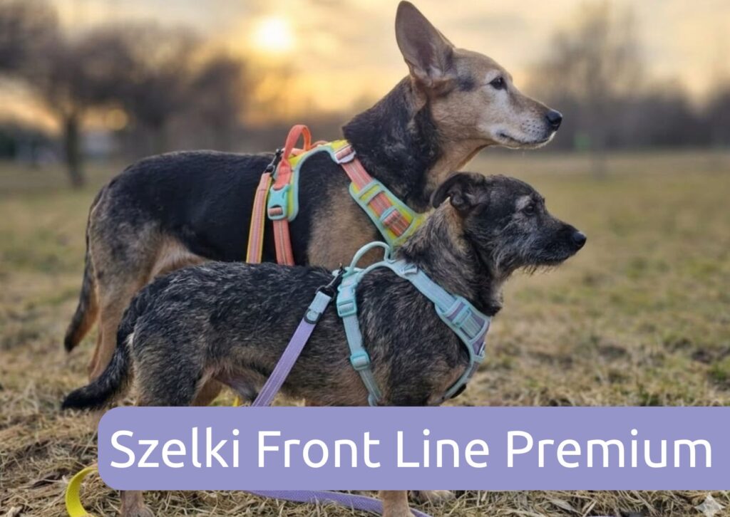 Modele z odpinanym przodem -to prawdziwe wybaiwienie dla psów z szeroką głową (np. buldogi) lub lękliwych czworonogów. Dzięki dodatkowej klamrze przy szyi, szelek nie musisz przekładać przez głowę, zakłada się je tak prosto jak obrożę. Dodatkowo nie wymagają one ciągłej regulacji przy każdym spacerze. Tę funkcję posiadają modele Front Line Premium, Blossom, Tropical, Security, Adventure oraz Lightness.